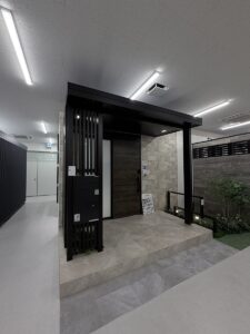 外構と建物を一体で見せるシーン展示になっていて、実際の暮らしをイメージしやすく、