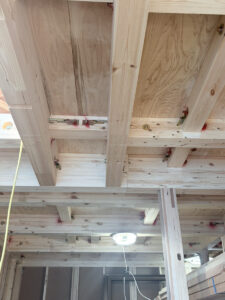 また、上棟直後のこの時期は柱や梁、金物などがすべて見えるため、木造住宅らしさを一番実感できるタイミングでもあります。