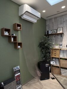 ショールーム内には、ダイキンのエアコンがずらりと展示されています。